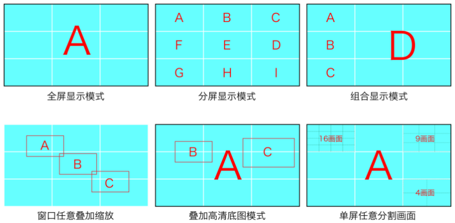 組合/分屏/開窗/疊加/縮放/跨屏等
