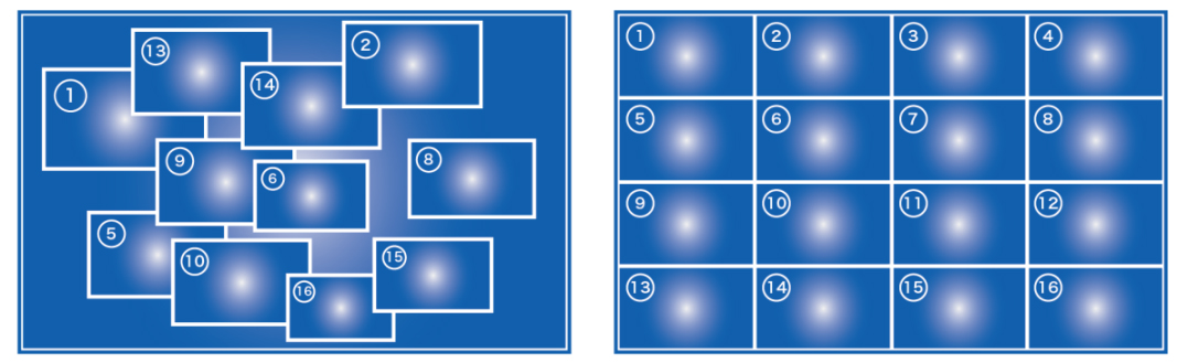 CYL-C6000的任意輸出物理單元可同時顯示1/4/6/8/9/12/16及其他數量的組合窗口,且信號的格式不受任何限制,非監控分割模式,單元內不同窗口層次可任意排列組合、疊加、縮放,也可拖動到其他顯示單元,互不局限和影響。