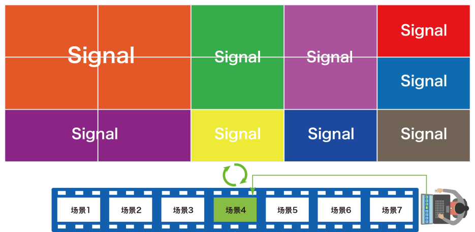 接入CYL-C6000產品的多種信號源可根據需求進行多個場景預案的編輯功能,將信號窗口按顯示需求擺放成相應的模式場景并命名,點擊快速調用相應的場景即可將當前所保存的場景快速調用顯示,可保存多達128種場景模式,便于用戶操作。
